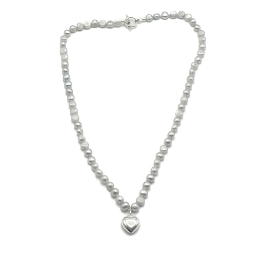Freshwater Pearls & Mini Sterling Silver Heart Necklace