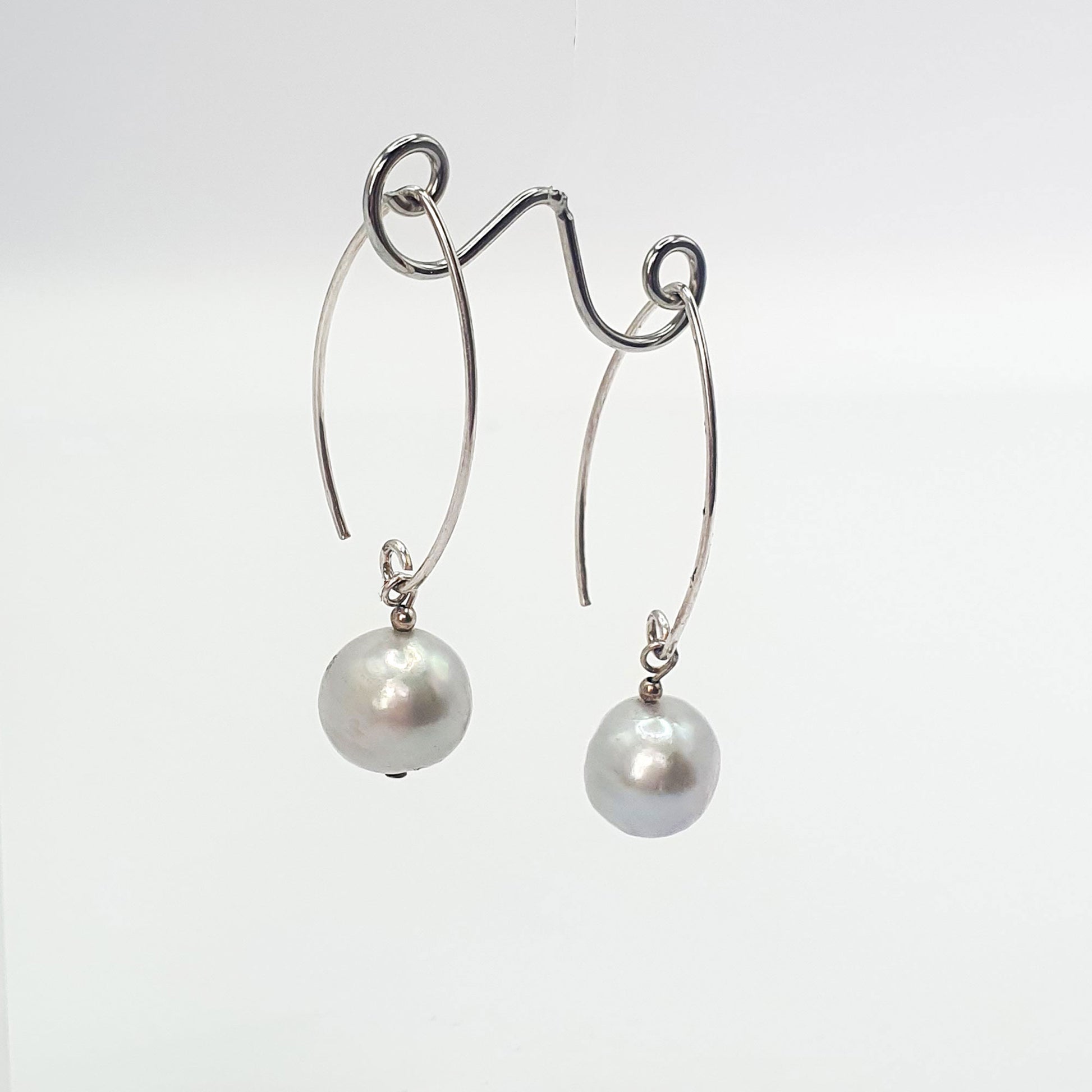 Freshwater pearls, around 10mm in size on long sterling silver oval ear wires.