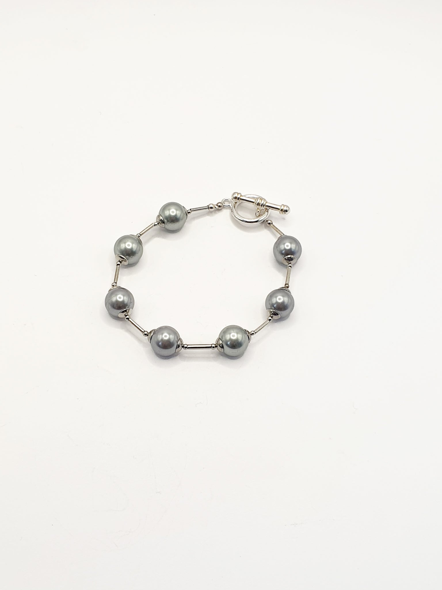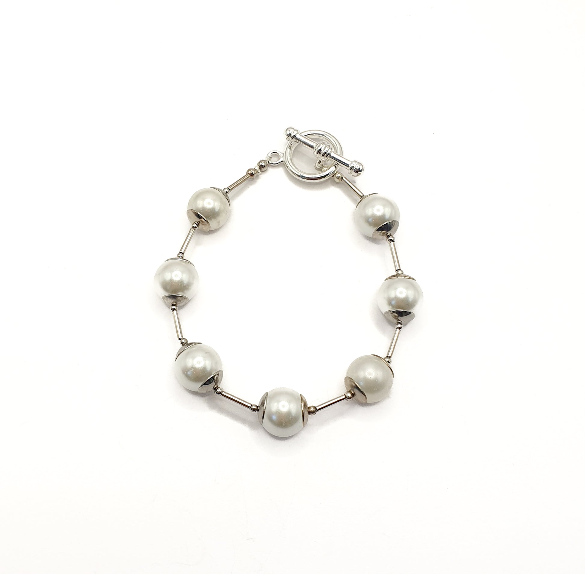 A timeless design of single colour glass pearls with a silver plated T-bar clasp