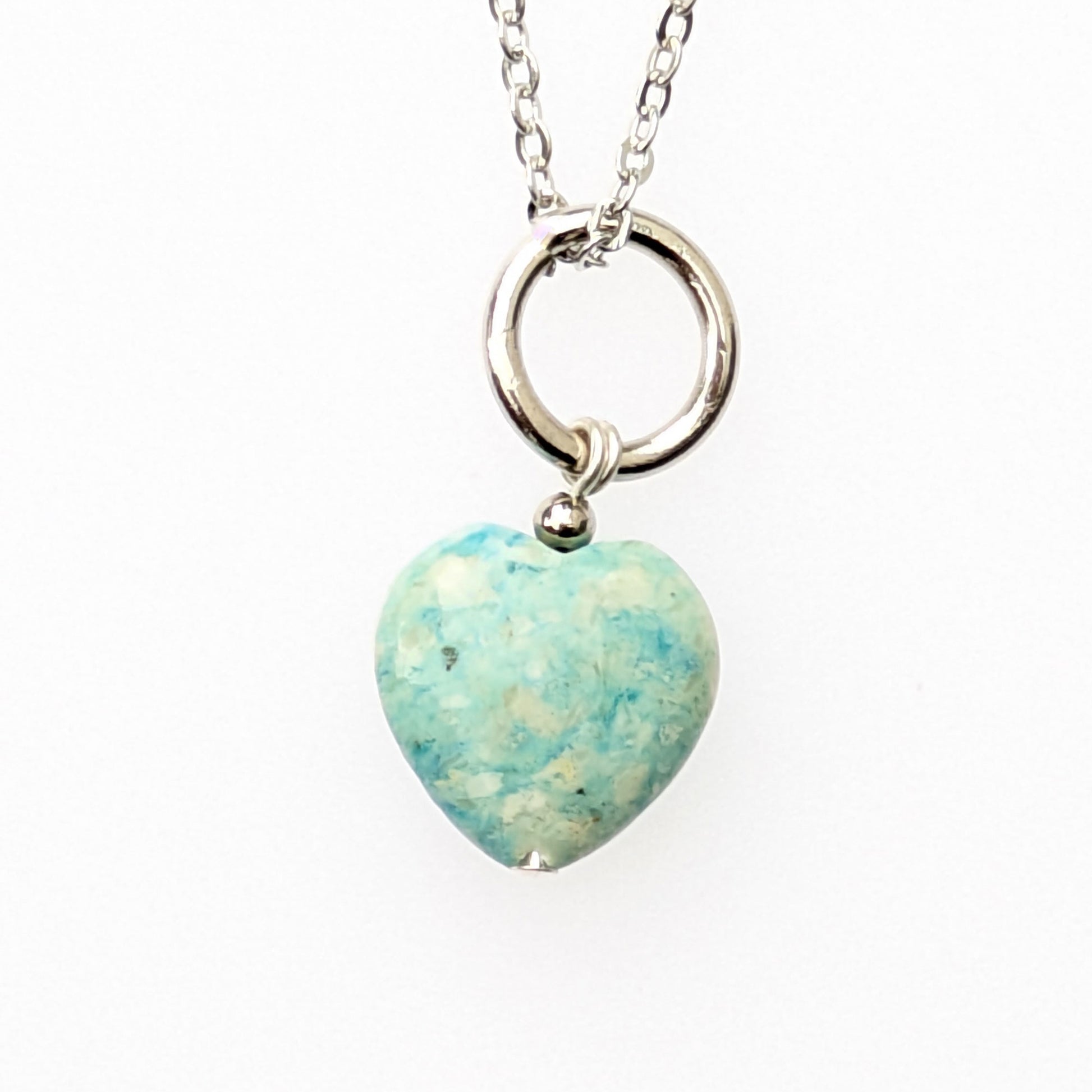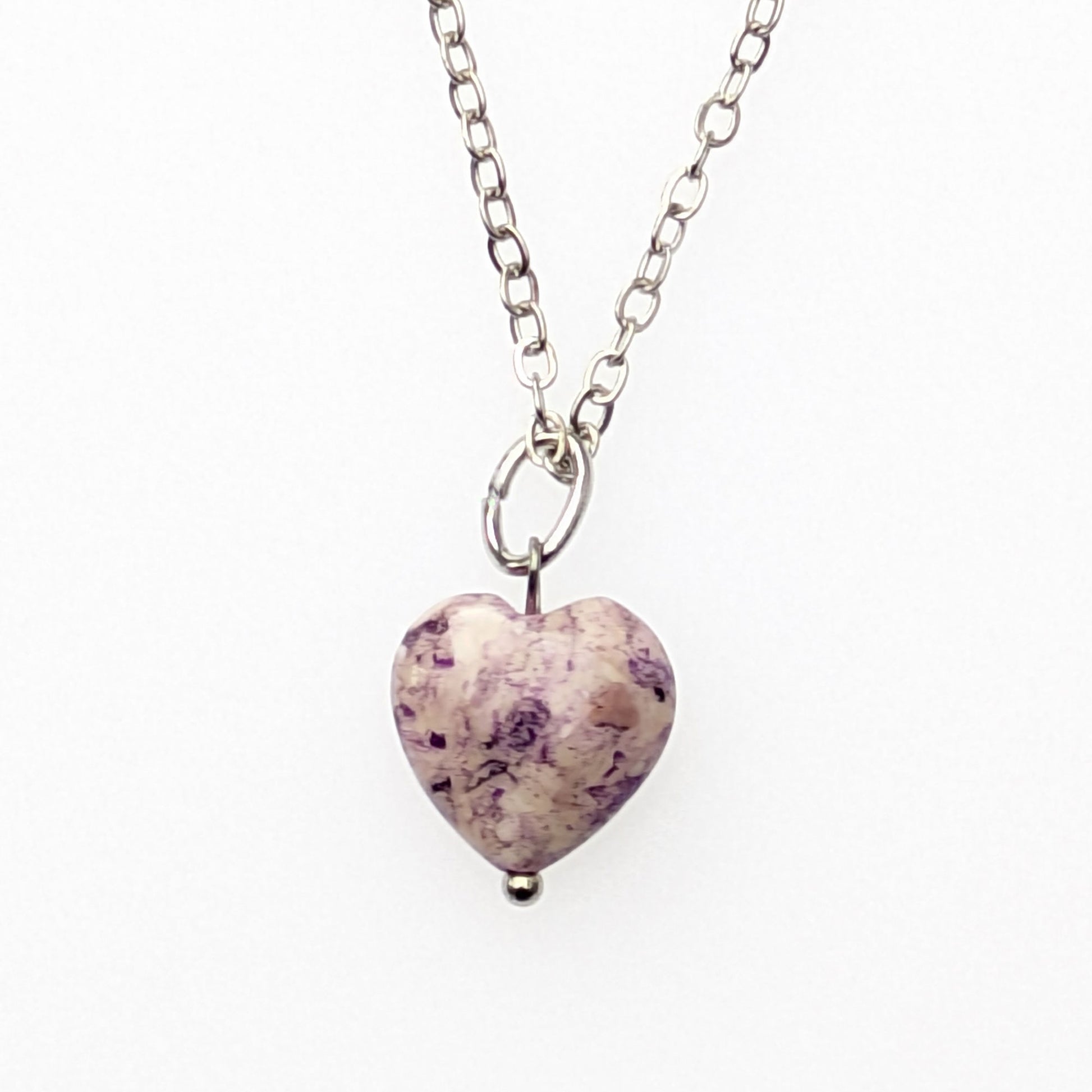 A simple little fossil heart on a silver plated chain.