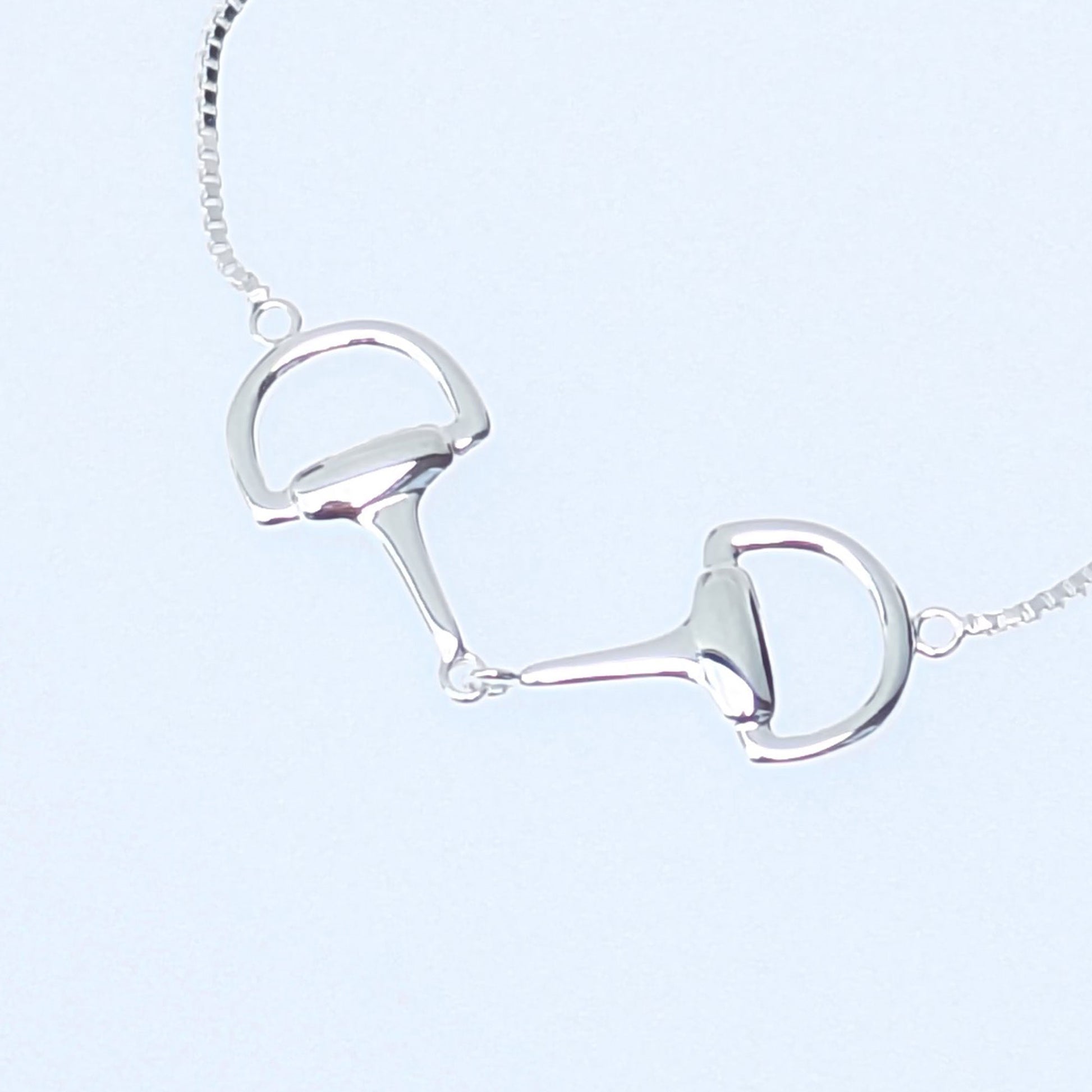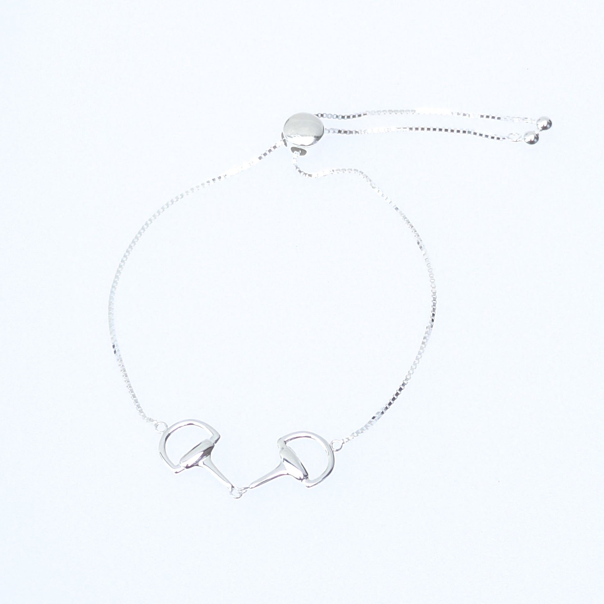 A single snaffle bit bracelet made entirely of sterling silver. The slide feature allows the bracelet to be fully adjustable and thus is suitable wrists of all sizes including children.